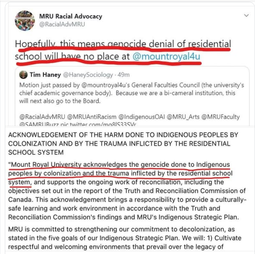Perhaps because of Carleton’s influence on the poisoning of the academic environment at Mount Royal University, General Faculties Council voted in September 2020 that the residential schools were genocidal.