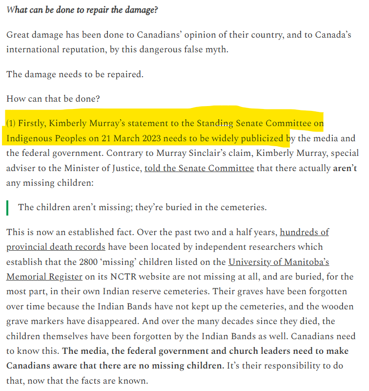 The idea that Canada committed genocide against aboriginal people is linked to the idea, fomented by the falsifier of history Kevin Annett, that there are thousands of “missing children” (when the Truth and Reconciliation Commission has not been able to provide one name of a child who “disappeared”). This has led Nina Green to argue that three things must be done to correct the record: