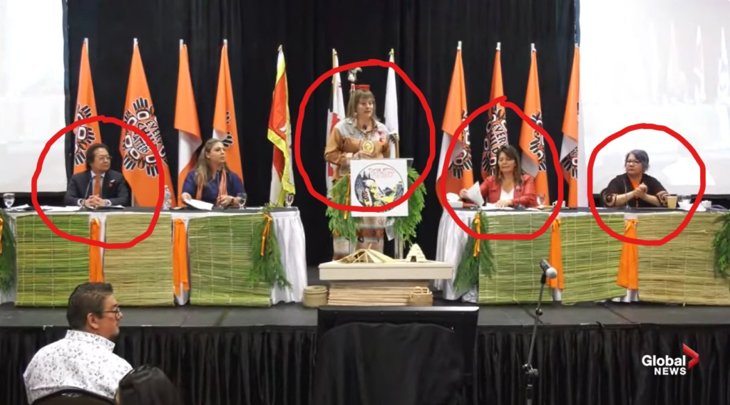 Points 49-45 – about the Kamloops Indian Band’s release of findings – were covered in the YouTube video below. The players include 1) the University of the Fraser Valley conflict anthropologist Sarah Beaulieu who did the GPR survey; 2) the Aboriginal Industry and neotribal elites; 3) the three “Knowledge Keepers”; 4) the archaeologists providing legitimacy for Beaulieu’s findings; and 5) the journalists covering the event.