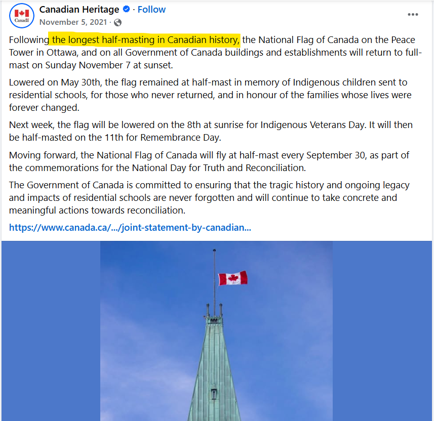 62. Lowering the Canadian flag for over five months (May 30, 2021)