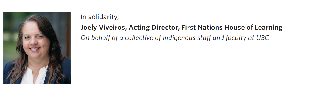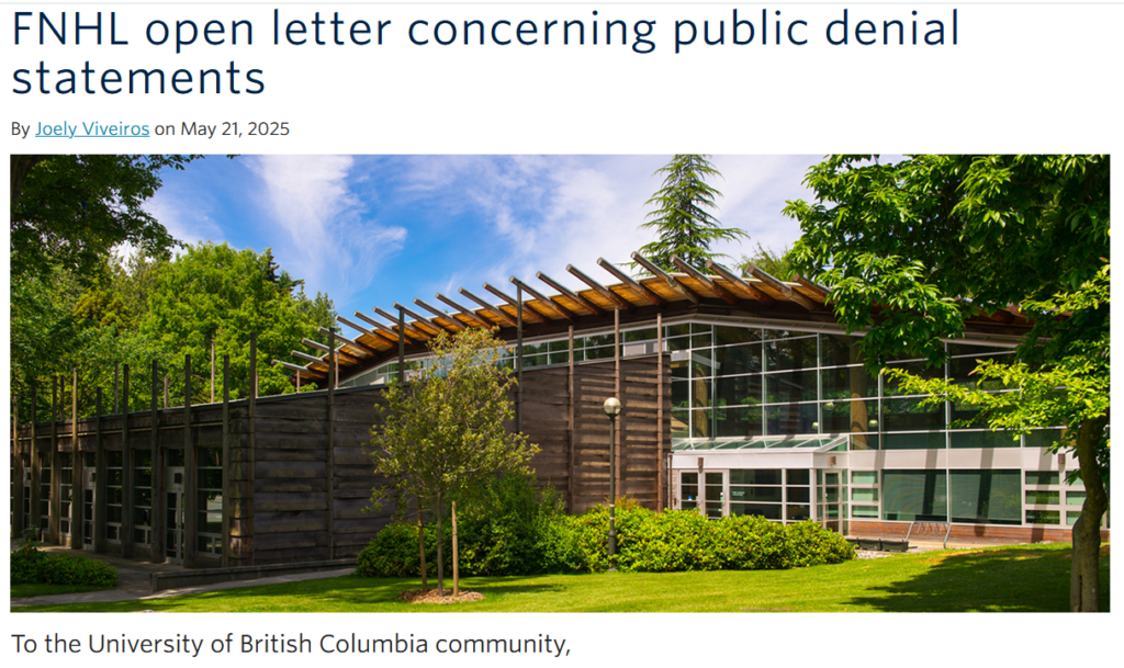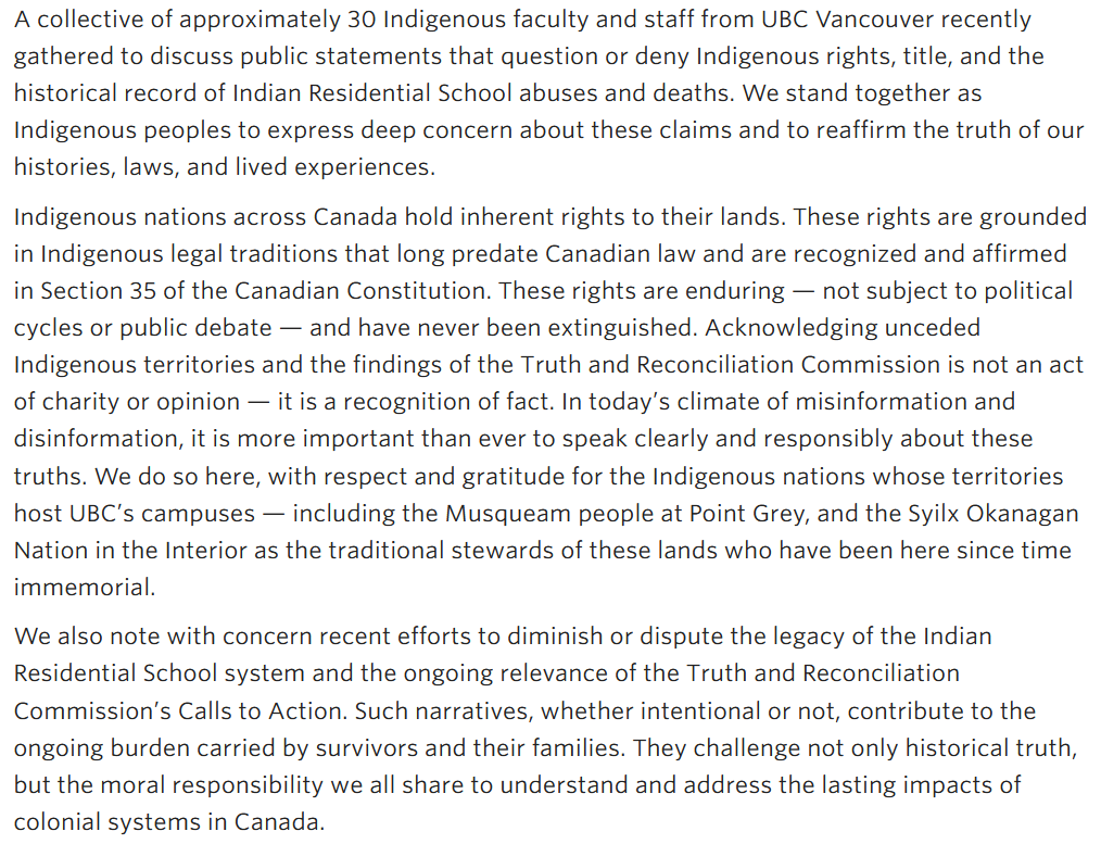 Viveiros also took on “denialism” when she put out a statement on behalf of “a collective of approximately 30 [unnamed] faculty and staff from UBC Vancouver” in May 2025.