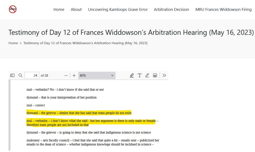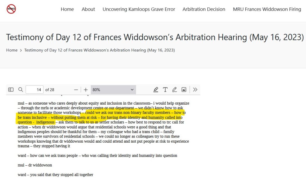 With respect to the claim “there are only two sexes”, this has negatively impacted Widdowson’s career as a professor. This is because Widdowson making this claim was argued by Mary-Lee Mulholland, the chair of sociology and anthropology, to result in trans colleagues “having their identity and humanity called into question”, resulting in there being “friction” in the workplace. “Friction” with colleagues was a reason given by Arbitrator David Phillip Jones for Widdowson not being reinstated.